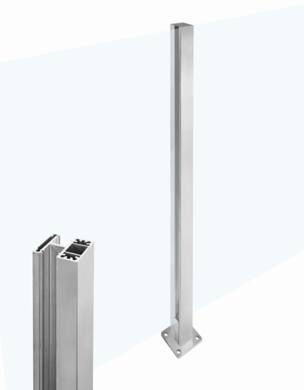 Stredový hranatý stĺpik uzavretý, , uchytenia na podlahu, , L=1100mm, , pre sklo8-12,76mm ( PRI OBJEDNÁVKE JE POTREBNÉ UPRESNIŤ HRÚBKU SKLA), , Rozmer : 50x55x1100mm, SADA obsahuje : sĺpik, vrchná krytka, tesnenie podľa hrúbky skla, spodná krytka profilu ,